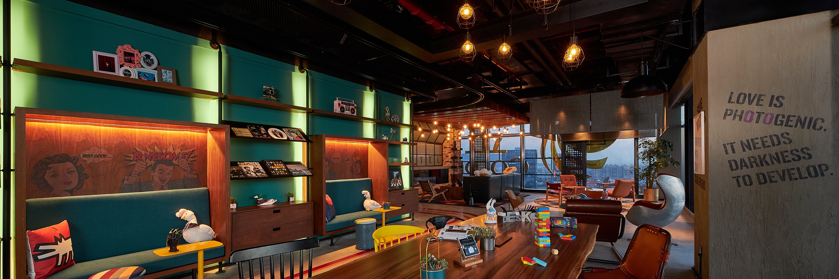 我们不过分拘泥于自我,全心投入为你打造玩乐时光。无论是小巧有趣的客房、设计独特的共享空间,还是前台酒吧,Moxy酒店为你打造趣味盎然的入住体验。
